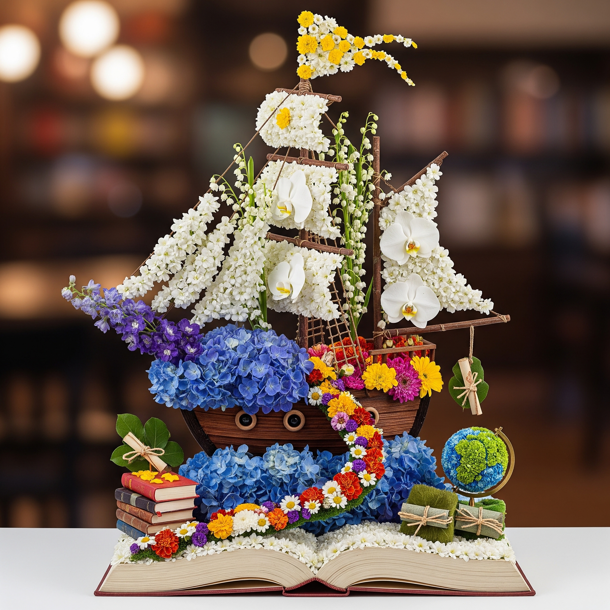 Ý nghĩa thuyết trình: Mẫu hoa “Con thuyền tri thức” mang ý nghĩa tri ân sâu sắc đến những người thầy, người cô – những “người lái đò” tận tụy ngày đêm đưa bao thế hệ học trò cập bến bờ tri thức. Hình ảnh con thuyền được kết từ hoa tượng trưng cho hành trình học tập, khám phá tri thức của học sinh. Mỗi bông hoa là một nụ cười, một niềm tin, một ước mơ mà thầy cô đã ươm mầm và nâng đỡ. Sắc hoa tươi tắn thể hiện tinh thần hiếu học, khát vọng vươn xa, đồng thời gửi gắm lòng biết ơn, sự kính trọng và tình cảm chân thành của học trò đối với công lao dạy dỗ to lớn của thầy cô trong Ngày Nhà giáo Việt Nam 20/11.