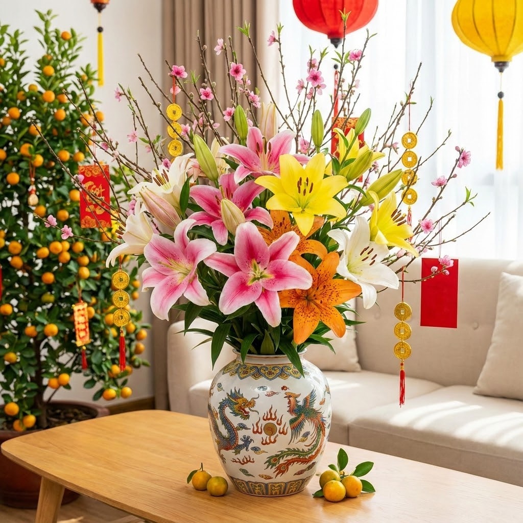 Hướng dẫn tự cắm Bình Hoa Ly đẹp chưng ngày tết