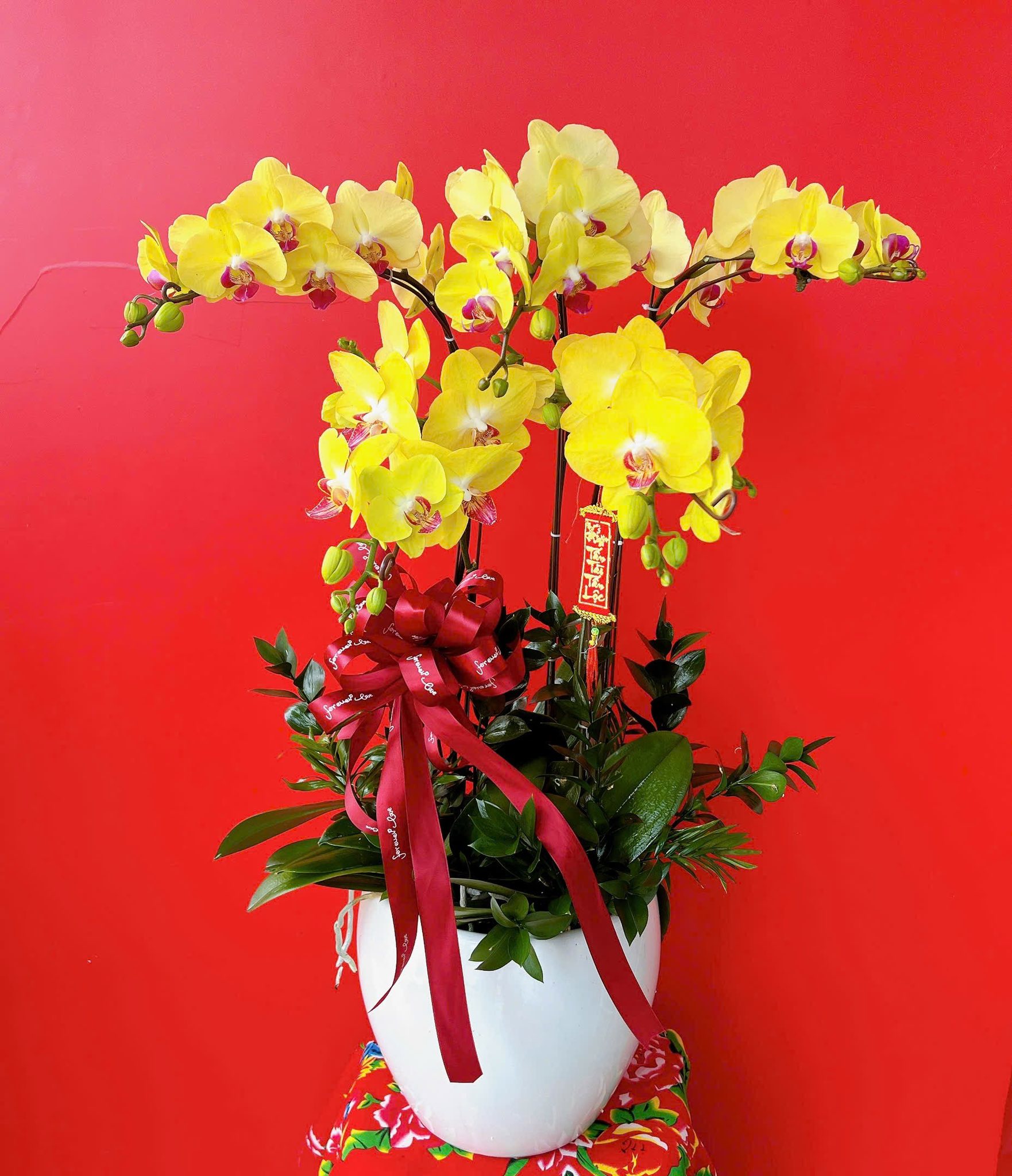 Lẵng Hoa Khai Trương Tông Đỏ May Mắn
