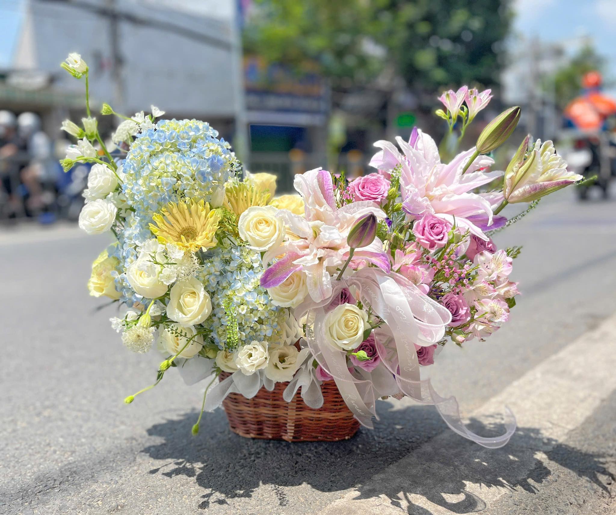 Giỏ hoa khai trương xinh xắn