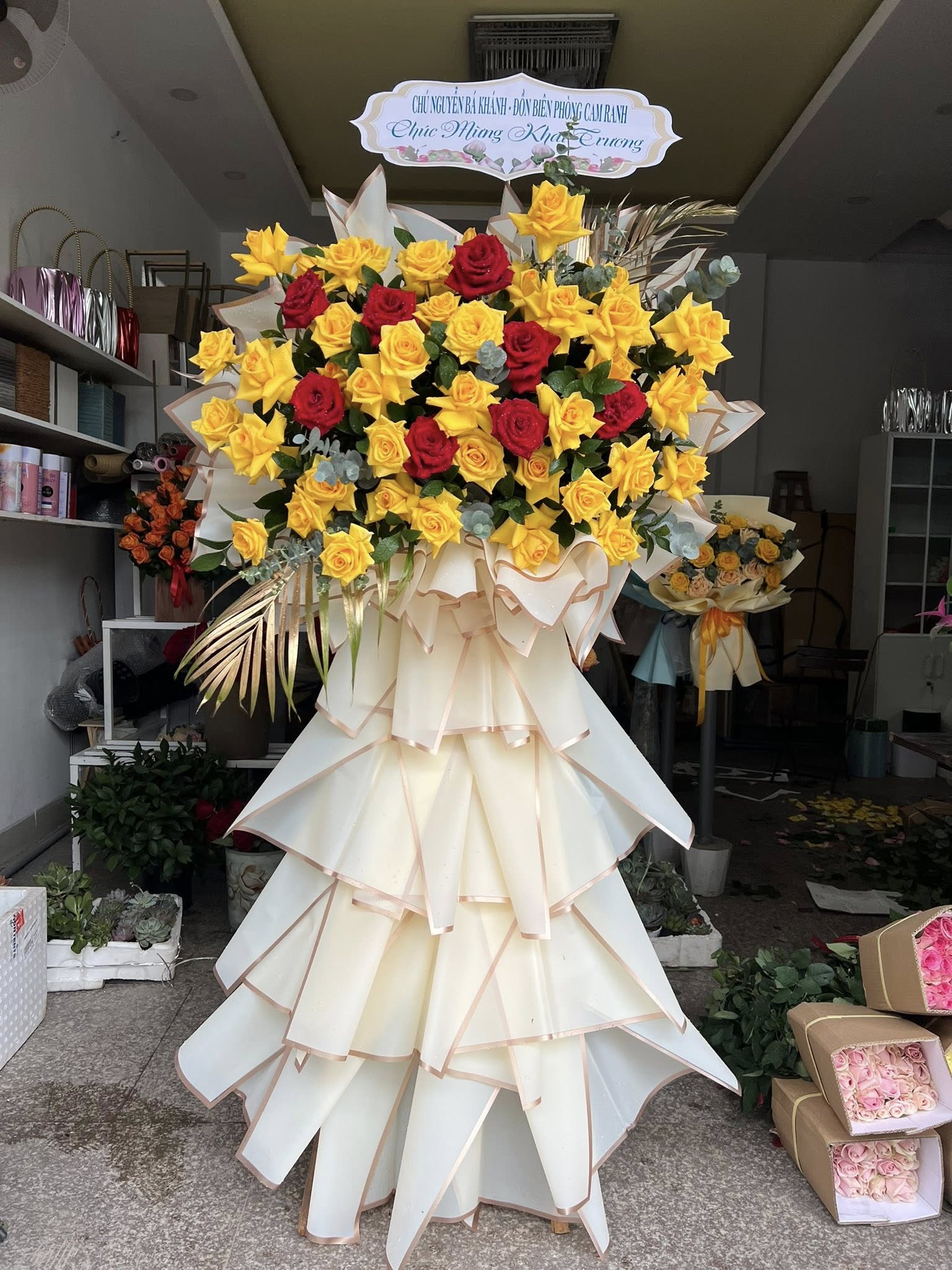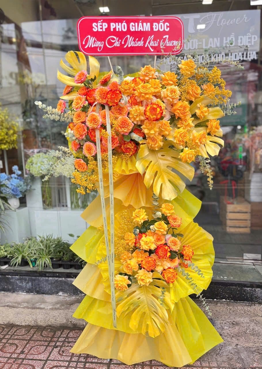 Kệ Hoa Khai Trương Tông Vàng Rực Rỡ
