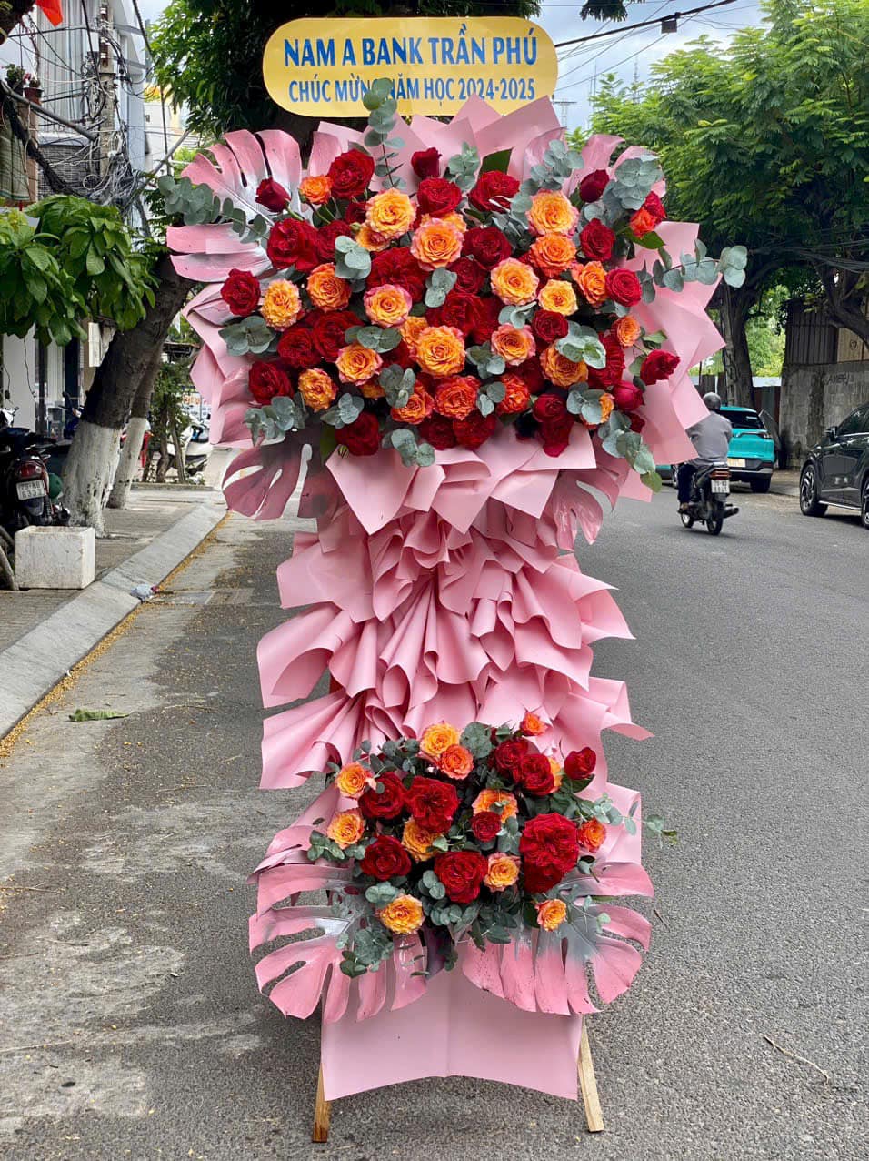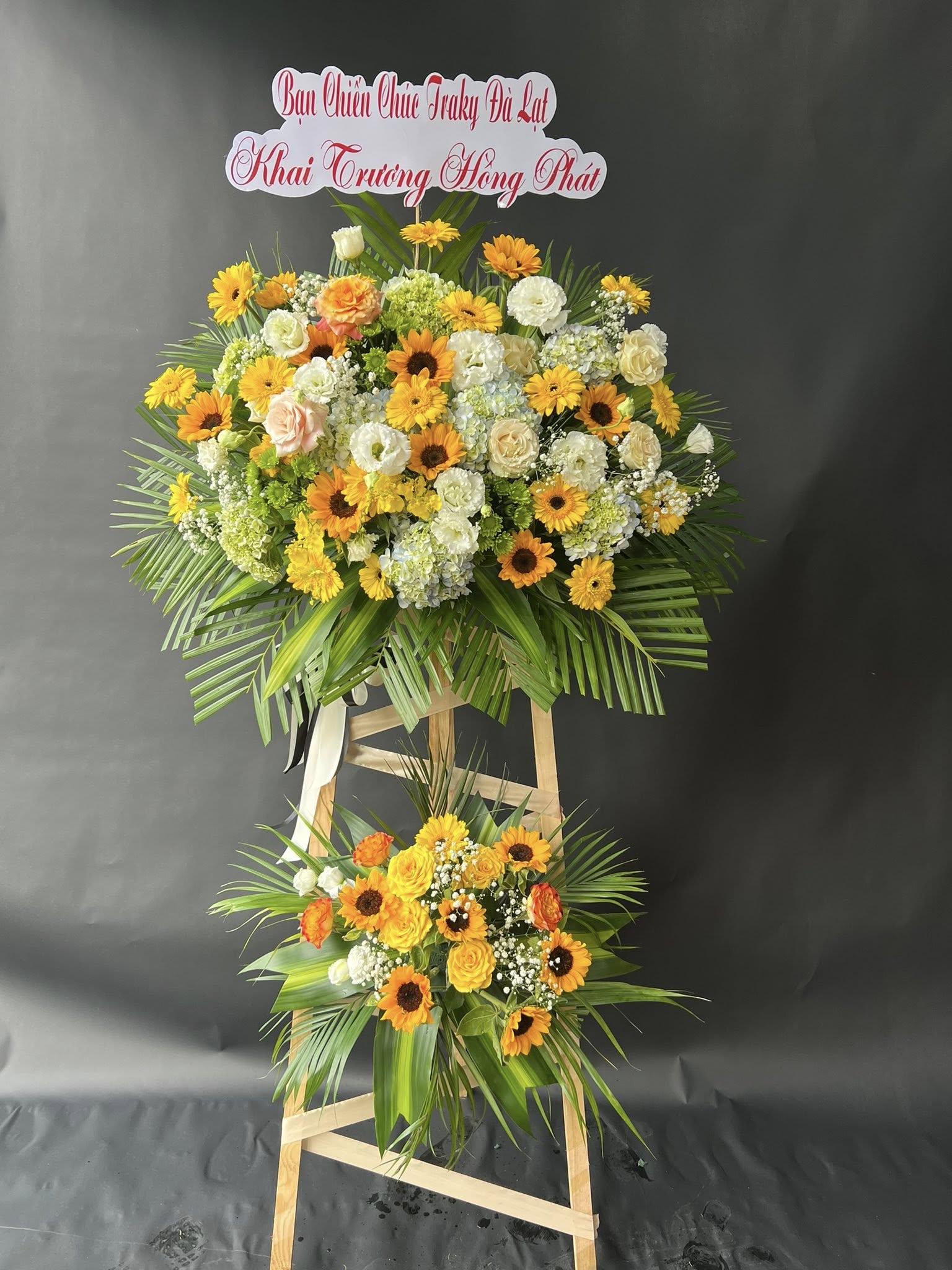 Đừng quên gửi kèm một tấm băng rôn in lời chúc ý nghĩa như "Chúc mừng khai trương", "Khai trương hồng phát", v.v