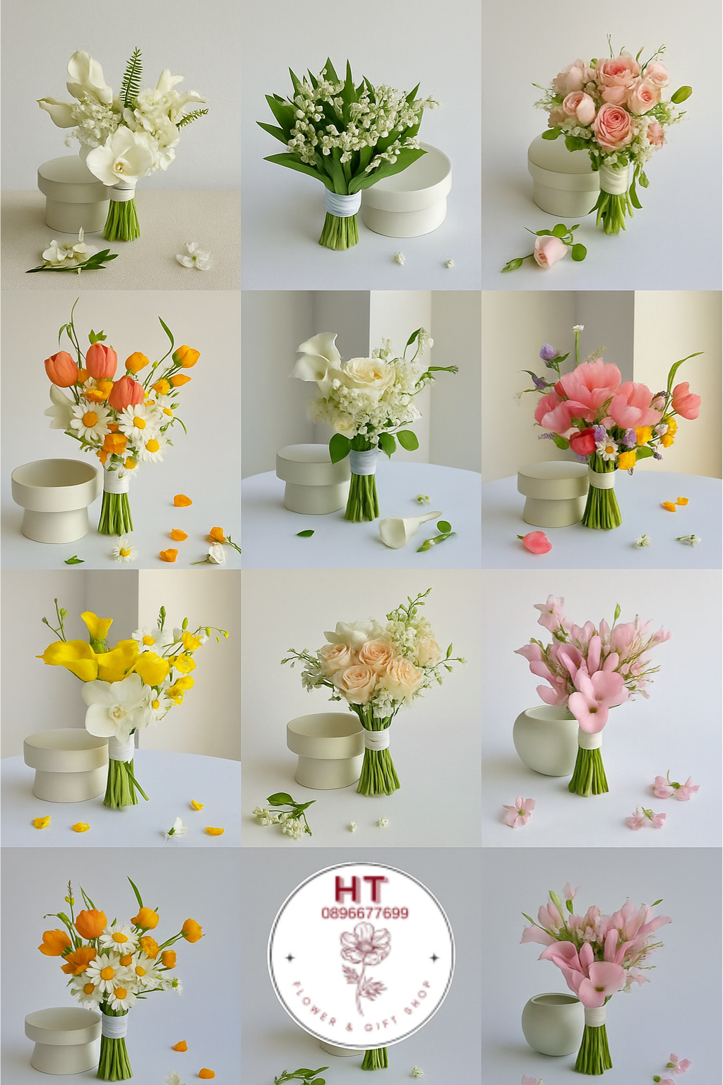 Với hơn nhiều năm kinh nghiệm trong nghề, HT FLOWER mang đến cho bạn một bó hoa cưới thật xinh và chuyên nghiệp. Thiết kế bó hoa theo yêu cầu – đúng concept. Hoa tươi 100% – giao đúng giờ. Tư vấn miễn phí từ chuyên viên cắm hoa giàu kinh nghiệm.